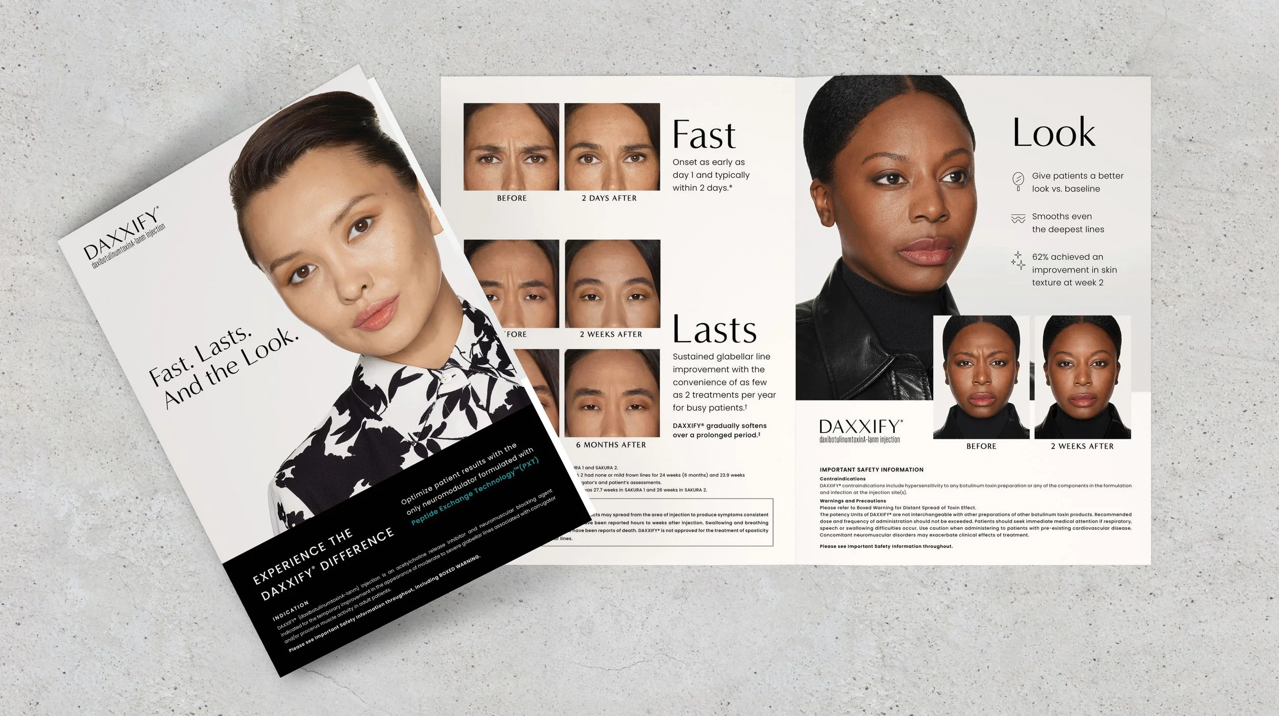 DAXXIFY launched as the newest neurotoxin on the market with the unmatched duration. As the Art Director during the development and launch of the brand, I designed the logo, created brand guidelines, created numerous campaign concepts, and developed the launch materials for both HCP and Consumer audiences.
